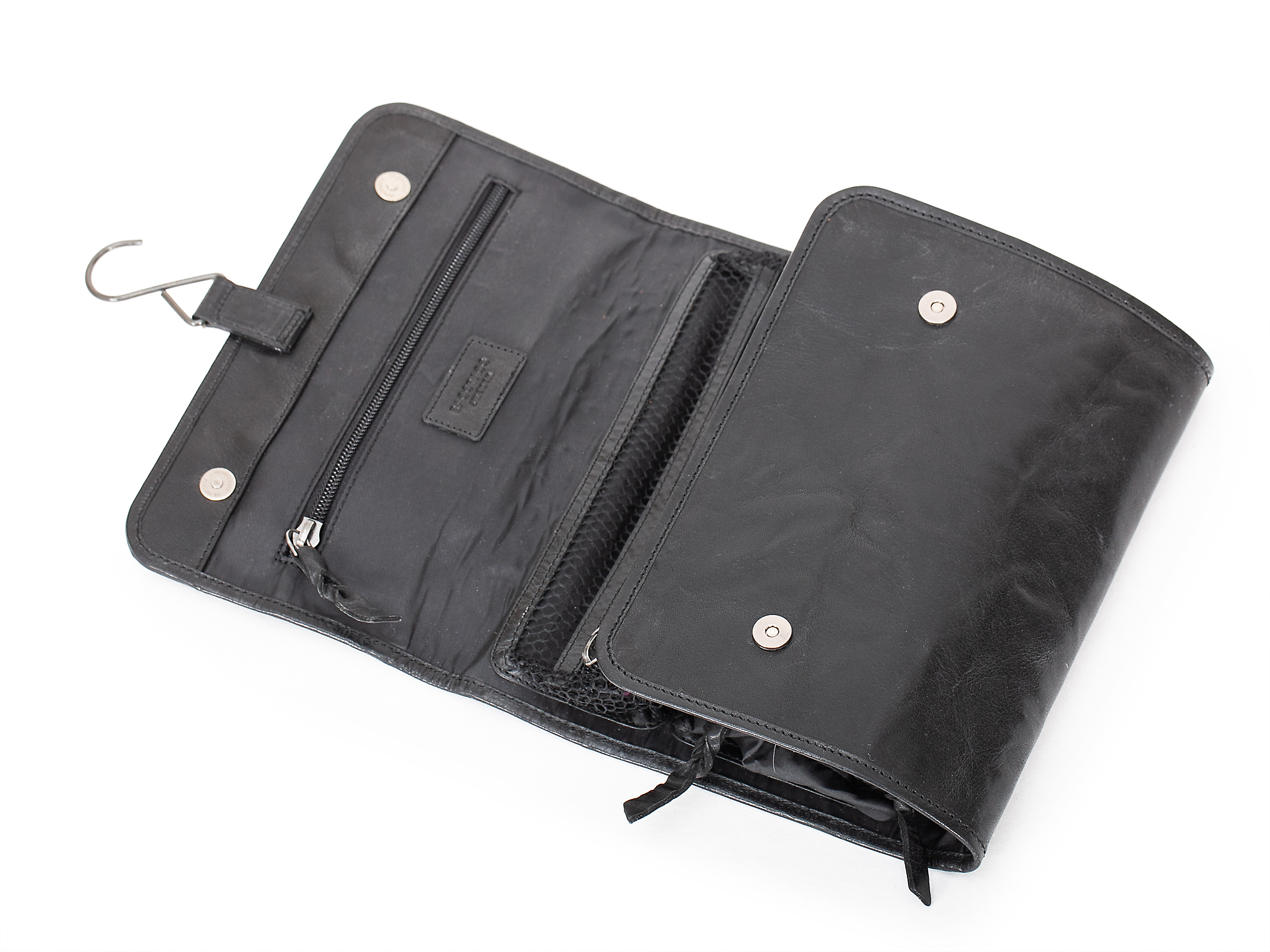 A tökéletes útitárs? Egyértelműen ez a kiváló minőségű akasztós piperetáska, bivalybőrből! Az utazás soha nem volt még élvezetesebb. Kicsomagolás egyszerű ki- és felakasztással. A minőségi bivalybőr táska sima és puha, a bélés nejlonból készült. Belül négy cipzáras rekesz található. A rögzítést két egymással szemben elhelyezett mágnes biztosítja. A felfüggesztés minőségi horogról gondoskodik.